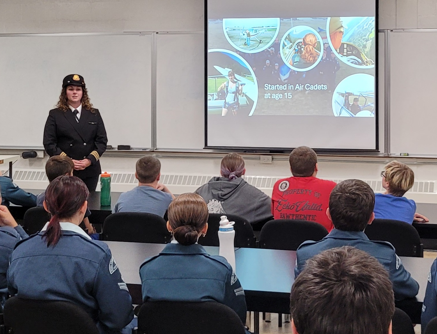 Recently, as part of the 50th Anniversary of females being allowed into the cadet program, Jessica Lehman, a pilot with Air Canada, visited the 531 City of Trail Air Cadet Squadron. She gave the cadets a presentation about her experiences as a pilot and took the opportunity to encourage the cadets to pursue their dreams in aviation.