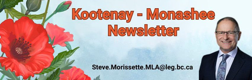 If you have any questions or concerns about a provincial issue, or need assistance with a provincial body, please don’t hesitate to reach out. We’re here to help. My office can be reached at Steve.Morissette.MLA@leg.bc.ca or 250-304-2783.