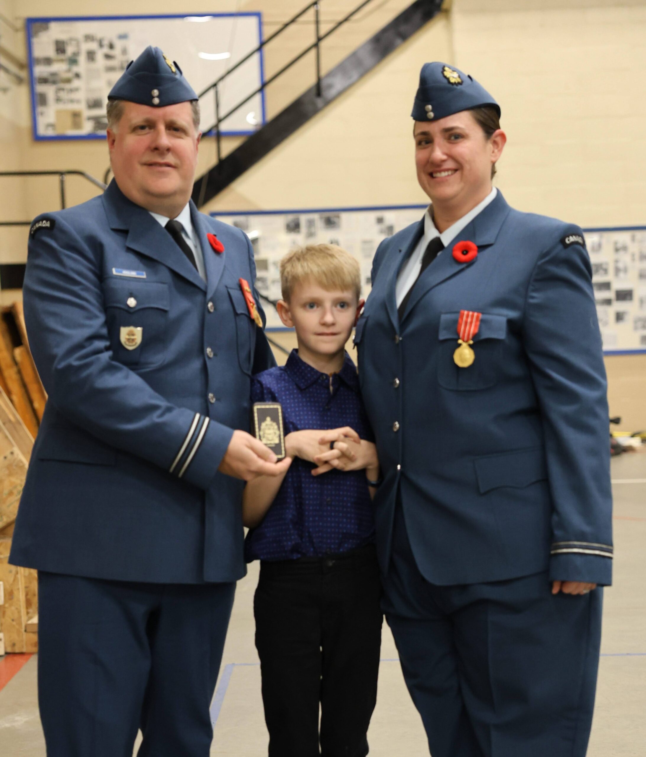 Lieutenant Jade Hoglund was presented with her Canadian Forces Decoration. The Canadian Forces’ Decoration is awarded to officers and Non-Commissioned Members of the Canadian Forces (CF) who have completed twelve years of service. The decoration was presented by Captain Kelly Hoglund, the Deputy Commanding Officer of 531 Squadron and their son Hunter.